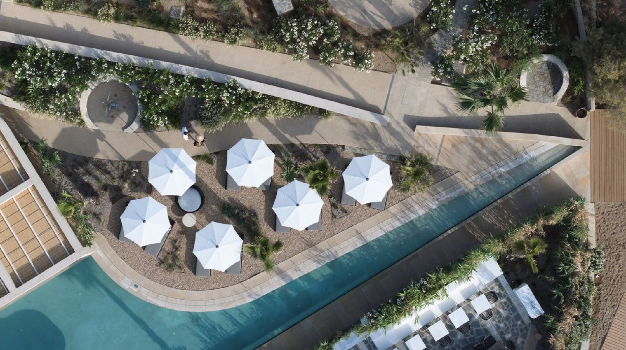 Further underlining the sense of peacefulness and serenity that the hotel’s architecture springs, the dedicated wellness space is tucked away in a calm and protected part of the hotel, capturing the essence of the historic thermal baths of Asklepios, an homage to Asclepius, the deity associated with medicine and recovery. Drawing inspiration from the ancient Greek belief in the therapeutic properties of light, air, and water, the tranquil ambiance of the hotel's semi-outdoor wellness area is crafted to ensure that guests can indulge in treatments amidst nature, while an outdoor theater hosts pilates sessions, embracing the holistic approach to well-being.