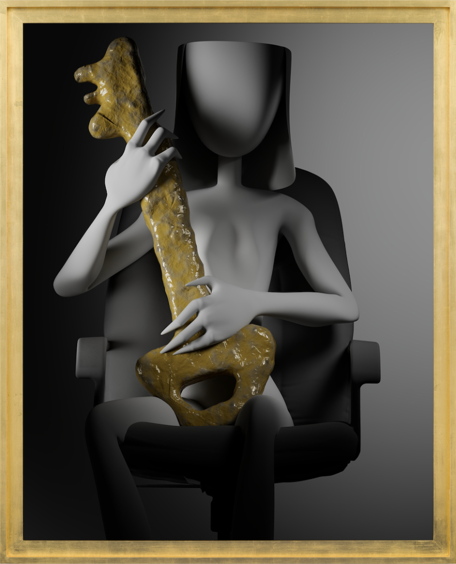 Bunny Rogers, Joan R Key 8, 2025. Fine Art Print on Hahnemühle PhotoRag Ultrasmooth 305g, gold-leafed artist frame, 200.5 x 163 x 7.5 cm, 79 x 64 x 3 in. Courtesy the artist and SOCIÉTÉ, Berlin.