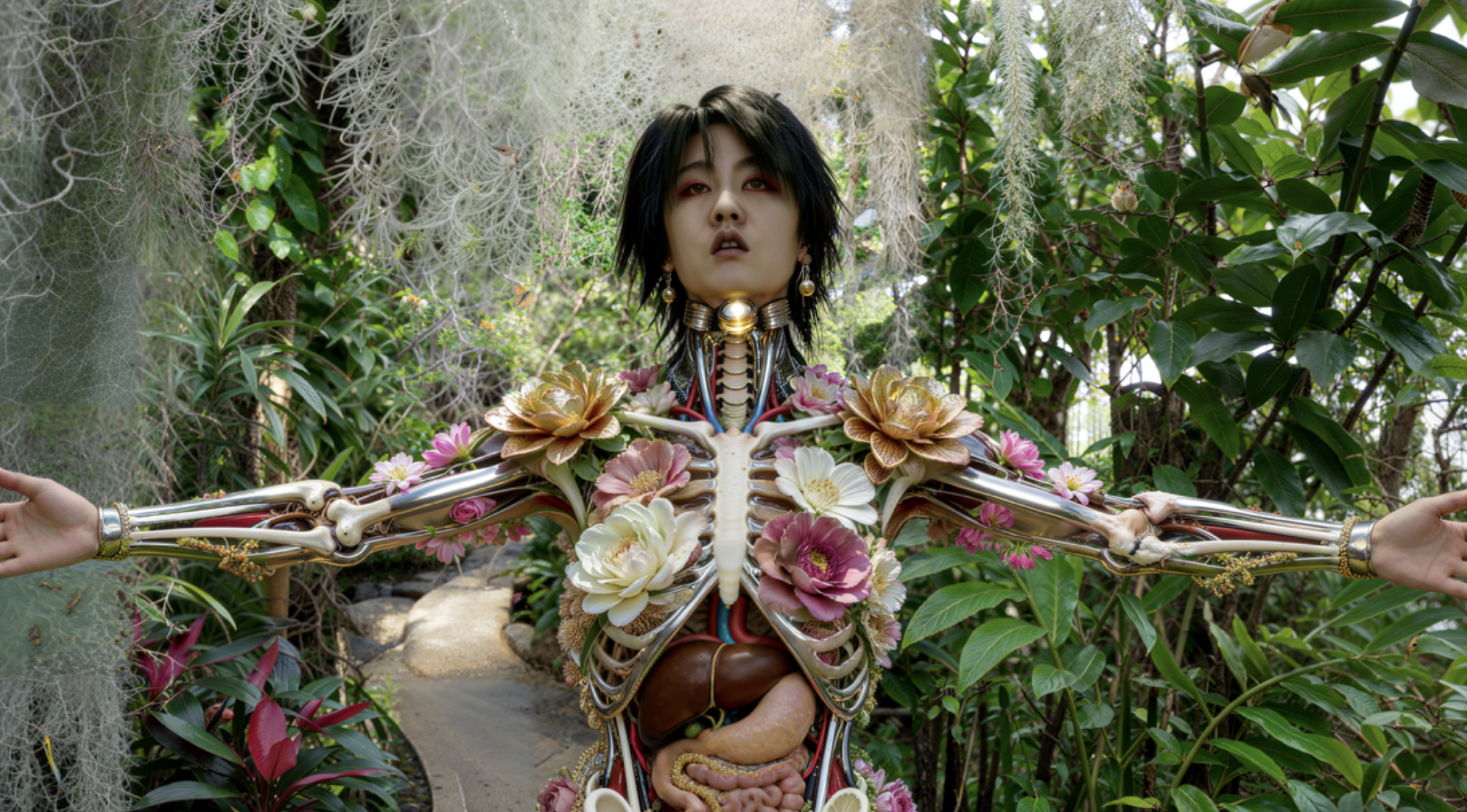 Manga, video games and anime — contemporary visual idioms adopted by Lu Yang — function primarily as a formal vocabulary rather than as the conceptual foundation of his work. Through this visual grammar, the artist brings forth hybrid entities that move beyond fixed categories of identity and embodiment, opening a space to reflect on what it means to be human in the 21st century.