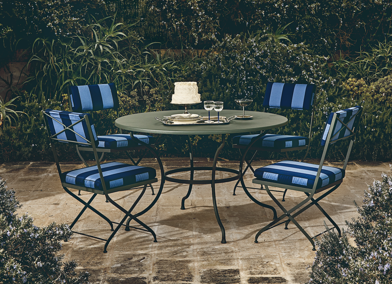 A contemporary reinterpretation of a great classic of outdoor furniture: wrought-iron collections adorned with exclusive fabrics.